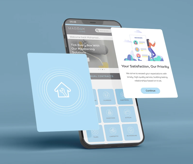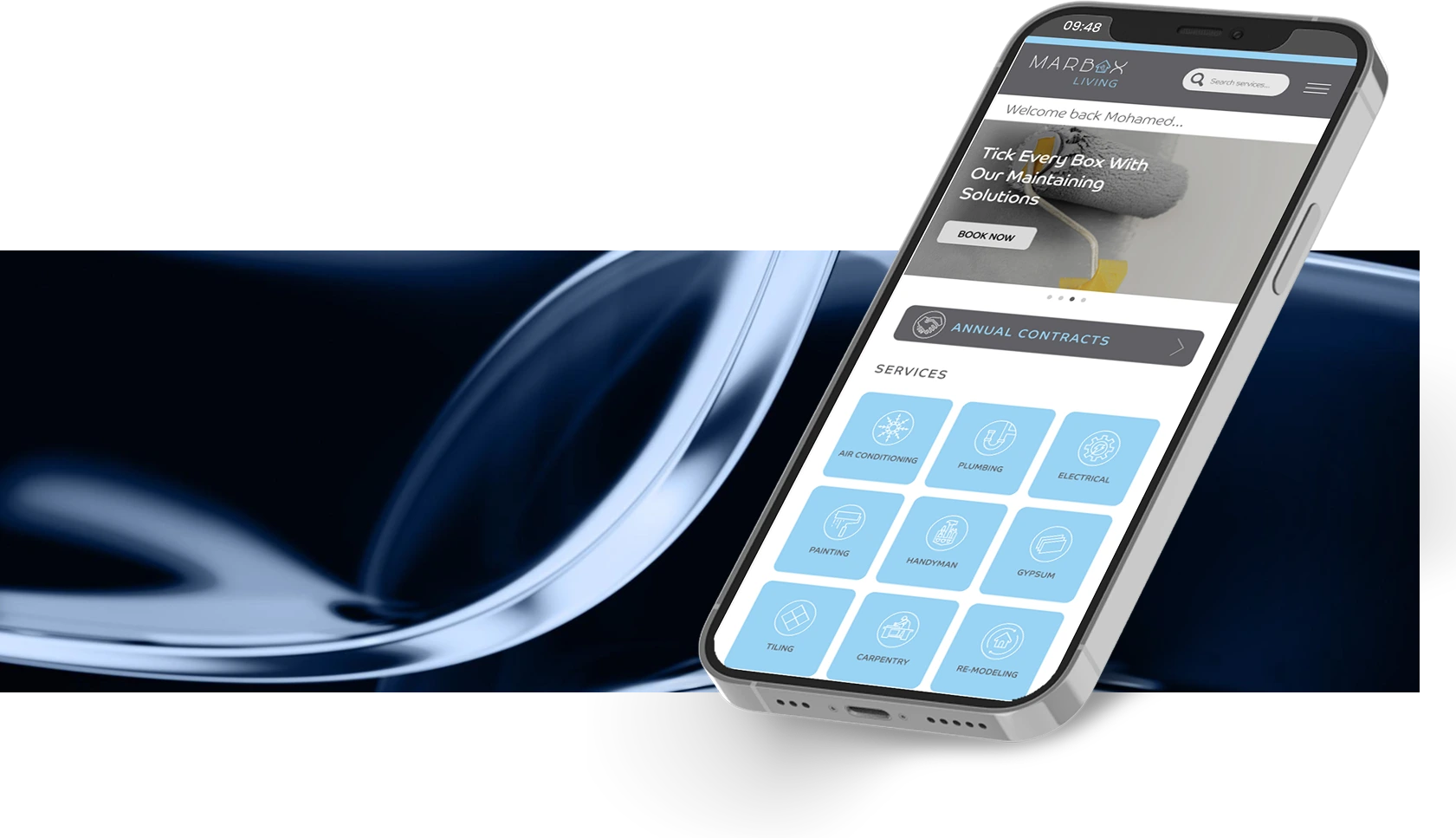 “A modern, user-focused design showcasing services and benefits with clean layouts and bold visuals, reflecting Marbox Living’s commitment to quality”